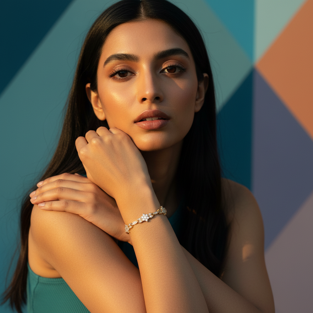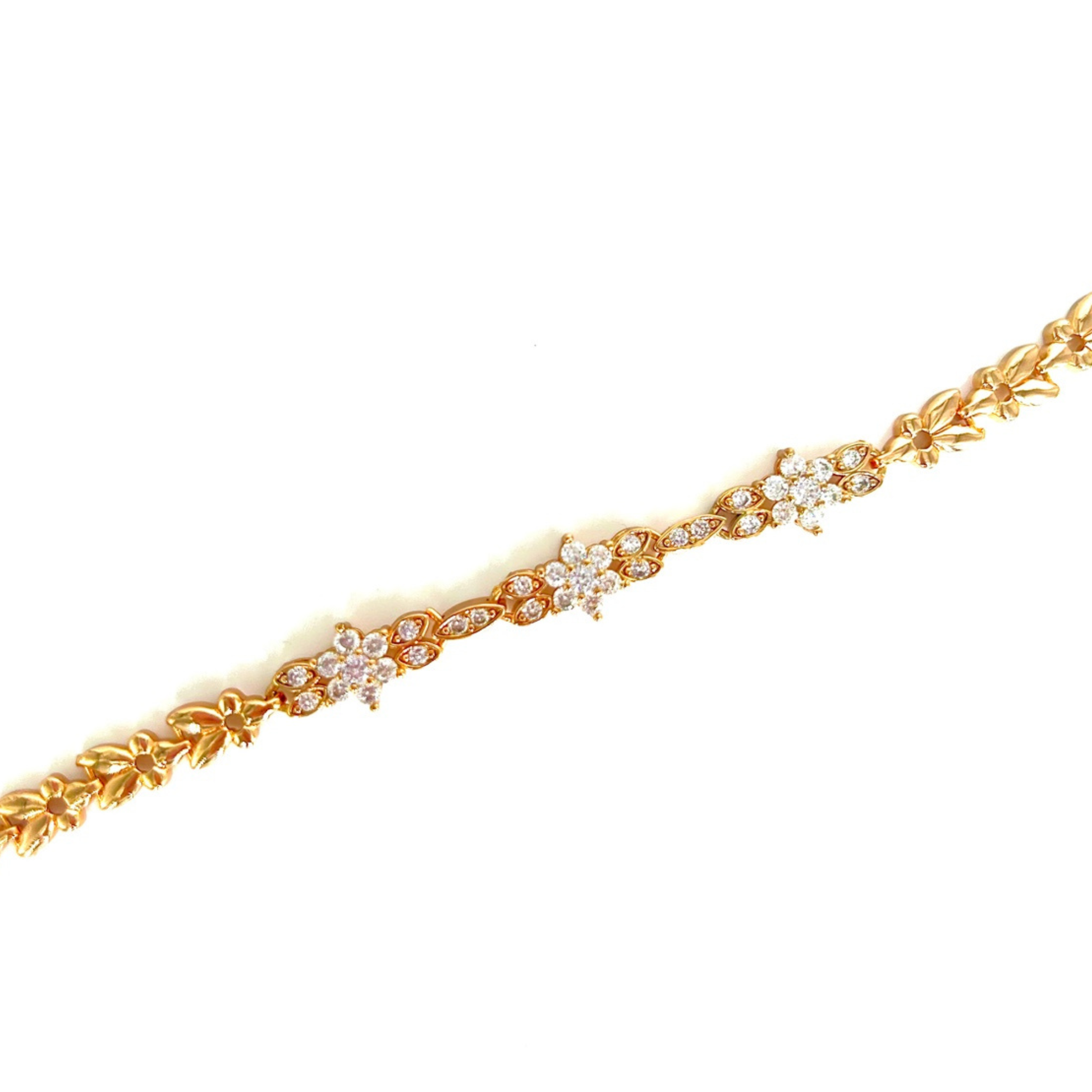 A radiant gold bracelet featuring sparkling floral clusters and delicate petal links—feminine, elegant, and irresistibly charming.